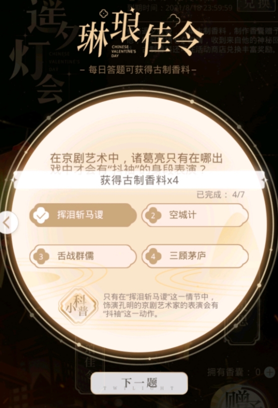 光与夜之恋七夕活动答案是什么?题目有哪些?光与夜之恋七夕活动正式开启咯,其题目都是关于古代牛郎织女的故事内容哦,详细答案及题目下面来告诉给大家吧,快来看看咯~