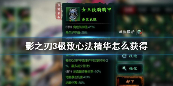 影之刃3极致心法精华怎么获得?在游戏内极致心法精华达到一定数量可以兑换任意的极品心法,那么这个重要的道具如何获得那?感兴趣的玩家们一起来看看影之刃3极致心法精华获得方法吧。