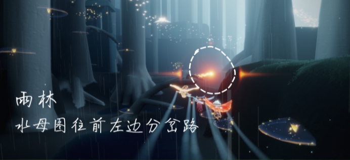 完成方法:橙色光芒就是魔法季的火之灵,在雨林管道图左边有飞鸟的地方;雨林管道图和三塔图左边连接处有许粗壮的树桩,橙色光芒就会从高空中降落。