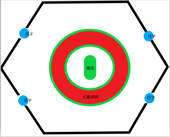 这个时候还是要老本行跳柱子,但是受限于每个人物的技能与体力状态新手极可能跳不上柱子,当圆形毒液喷完,场边会有一圈安全区域。然后BOSS开始点名铺毒痰,可能会最终没有活动空间,而被毒死。