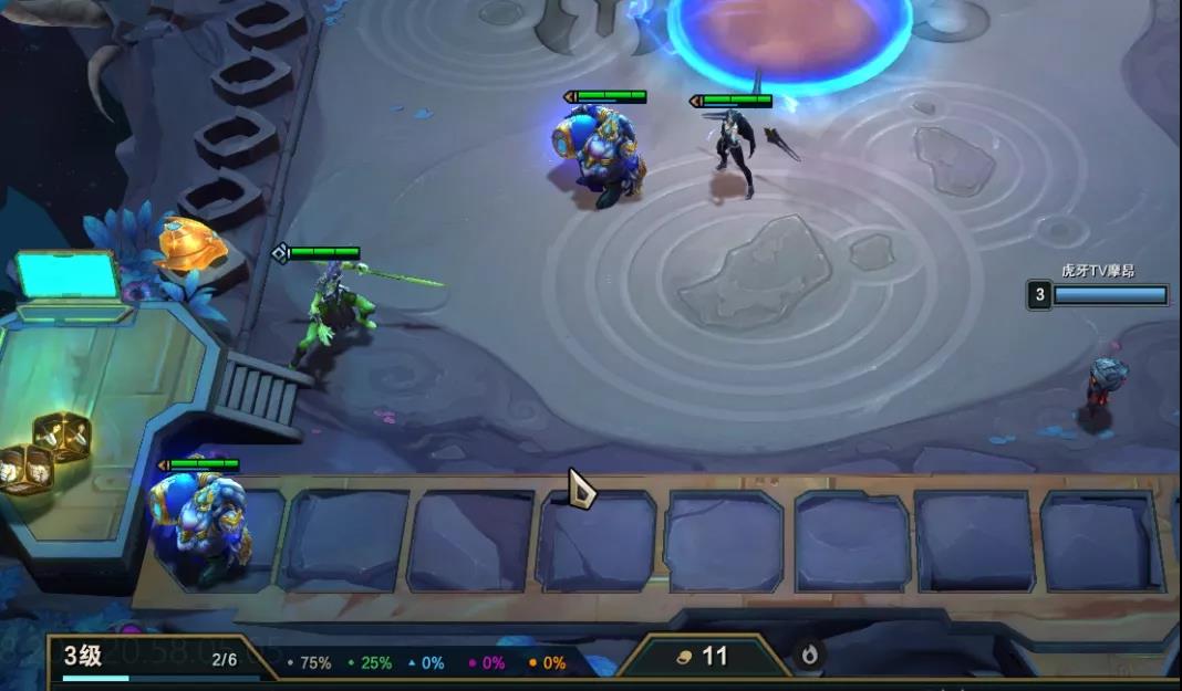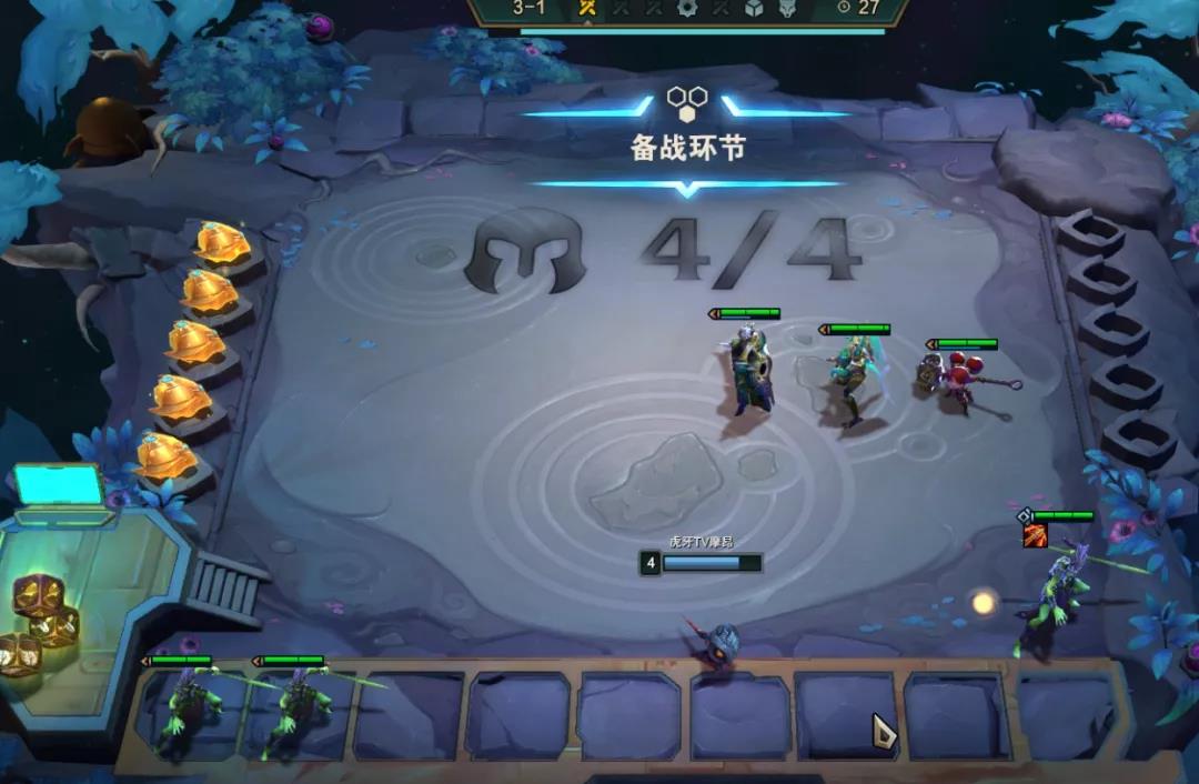 这局在3-1搜卡8只,3-2白嫖1只,直接三星滑板鞋。但蕾欧娜与剑魔非常少,就不能考虑剑魔主坦,准备转努努或征服体系。在3星滑板鞋后可直接稳定锁血通常能坚持到5阶段。之后我们攒钱上人口就好。
