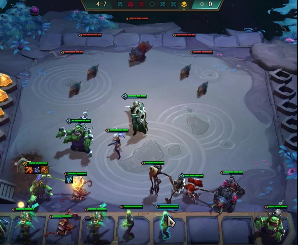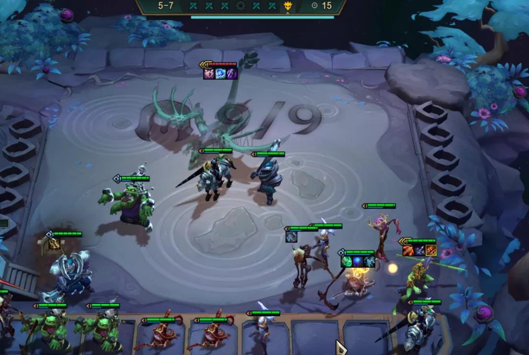 来到5阶段,继续攒钱上人人口,挂复生或铁甲羁绊就好。但更多是需要对位,一定避免斜对位大眼,不的会被大眼带走,如果走努努流,不要让努努第一排尽量让努努对位敌方最肉棋子,直接一口闷。
