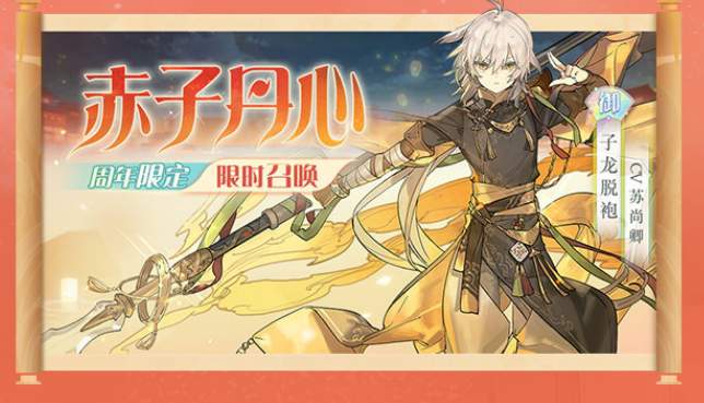 在8月26日——9月15日活动期间,游戏内将限时开放「赤子丹心」限定召唤阵,通过该召唤阵抽取获得年度限定御品食魂「子龙脱袍」召唤概率将提升,占抽取御品食魂概率的50%