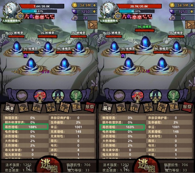 在本人测试【沥血元素】是根据站街血量转化毒伤,还是根据战斗血量转化毒伤的过程中,发现战斗面板与我计算值不一致,实际增幅与我通过公式计算的增幅相同,却又不完全相同,比较蛋疼: