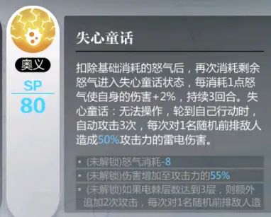 ①雷系加伤,单体回怒,奥义使单个目标受击回血,适用于敌人多且多数敌人只攻击前排的场合,用起来体验一般。