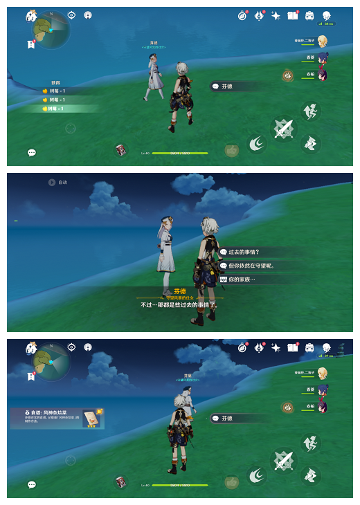 2、在望风角和芬德对话选择第二项,得到【食谱:风神杂烩菜】
