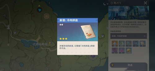 4、通关鹰之门得到【食谱:冷肉拼盘】