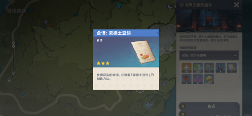 3、通关北方之狼的庙宇得到【食谱:蒙德土豆饼】
