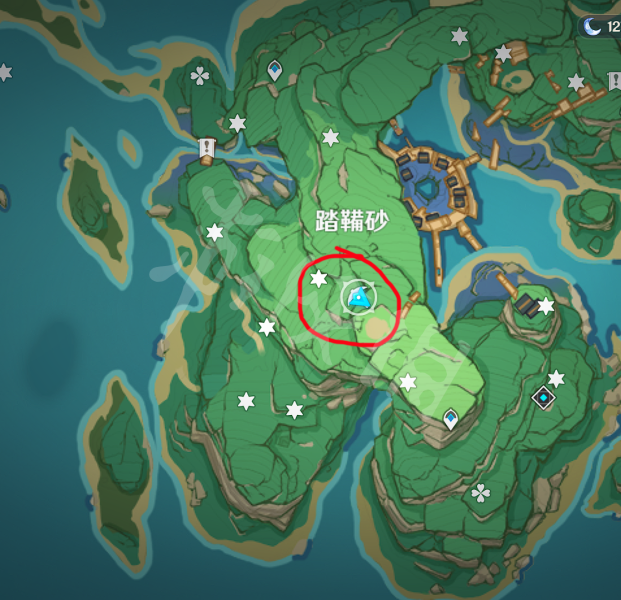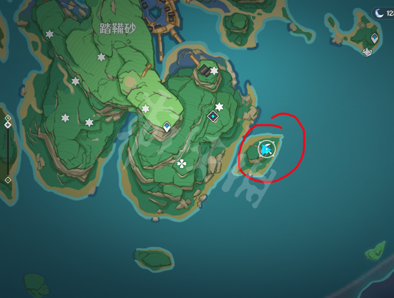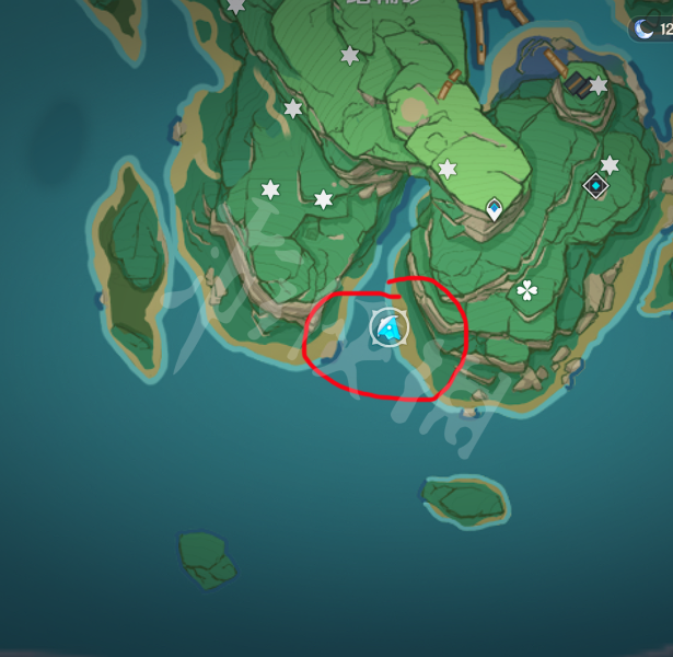 往下飞,可在次平台上看见,正对的闪光点即是。