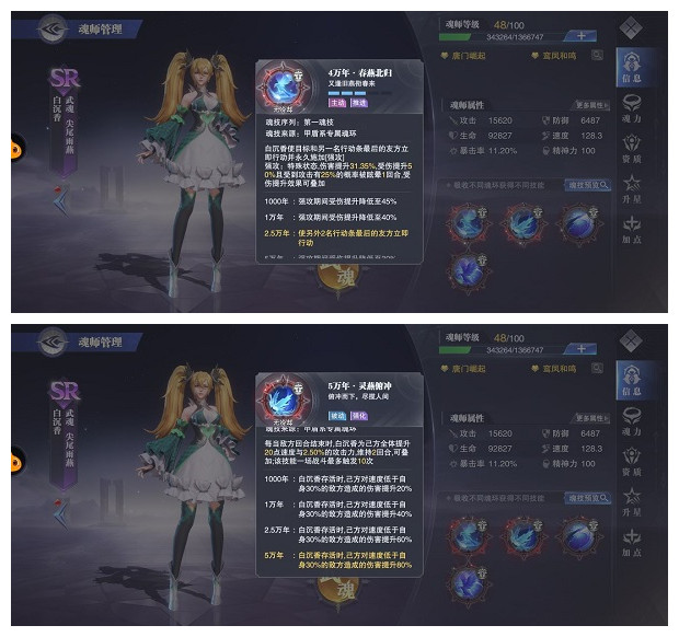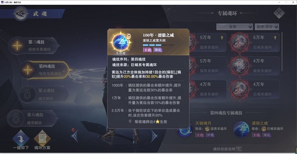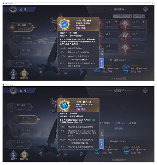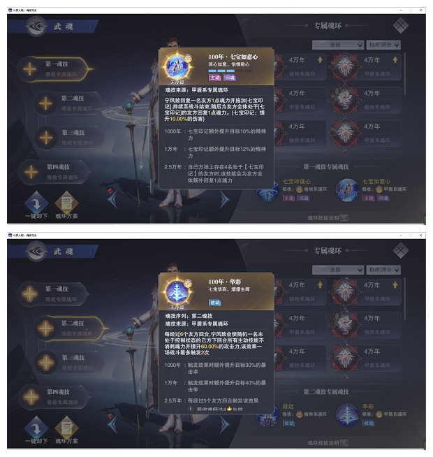 最重要的是第一魂技,可推进1名对友行动条,回复其2点魂力,并增伤2回合,同样非常契合单核打分阵容,在增伤的同时提升攻击力。第四魂技增伤也十分适用。