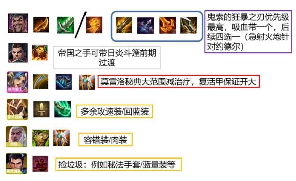 开局抢攻速/腰带,攻速是为主c帝国之斧装备,腰带则是可以合日炎斗篷更好的连胜过渡。