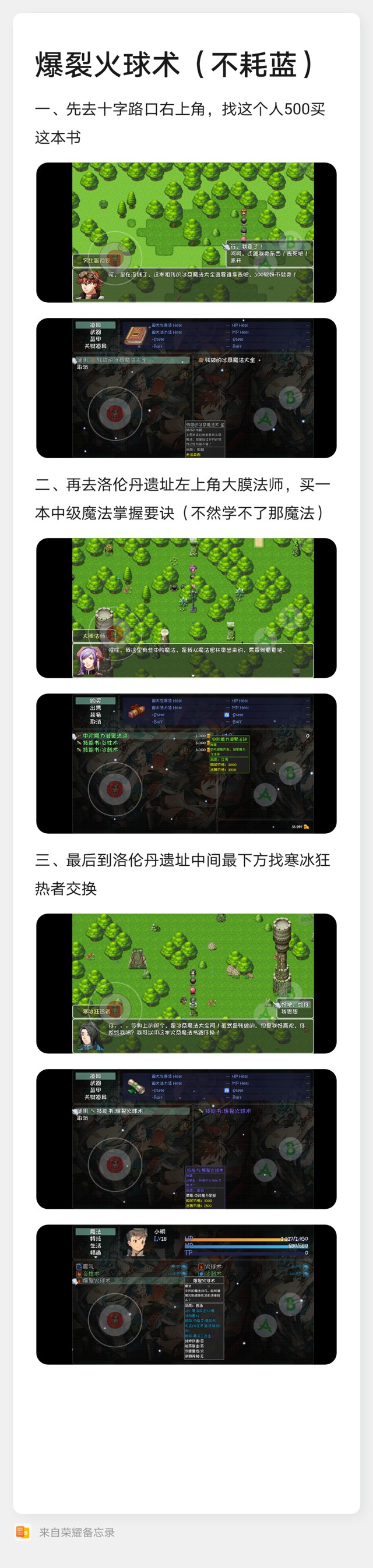 《世界World2怀旧版》爆裂火球术攻略一、先去十字路口右上角,找这个人500买这本书二、再去洛伦丹遗址左上角大膜法师,买一本中级魔法掌握要诀(不然学不了那魔法)三、最后到洛伦