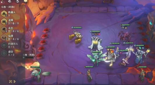 除机器人之外的斗士全部顶前面,其余都缩角落,到九级时挂上卡莎对着对面的c位跳。注意熊熊不要放在对方输出脸上即可。