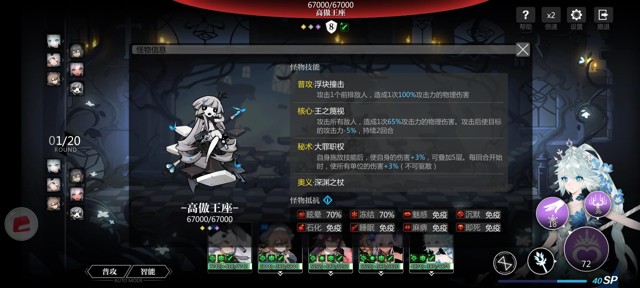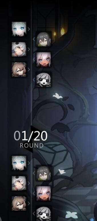上方排位越上方的人偶与怪物就越会优先进入攻击模式,中间则是下回合的出战顺序其中1/20表示的是当前回合数。