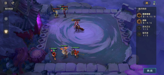 看到拥有巨额生命值的暗域巨魔我们就还是得依赖于提莫的“大魔王”羁绊进行斩杀。将提莫放在左下底角处避免直接被击杀,锤石放在左边用来控制跳到另外一边的佛耶戈。狗熊由于有“复生亡魂”站在第一排打出第一波控制,同时凯南能够衔接控制进行进一步限制敌人。