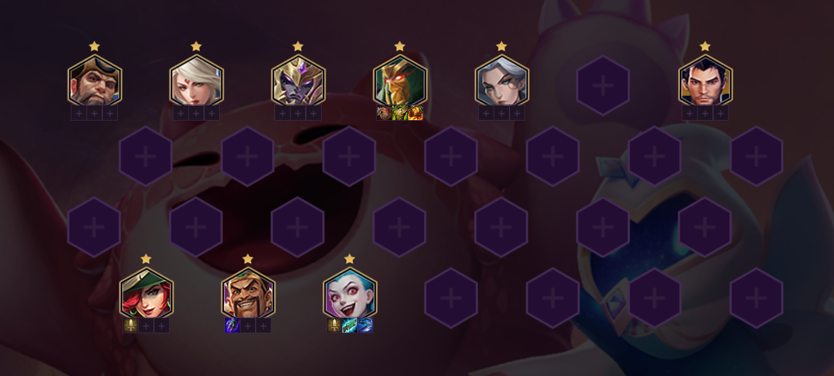 如果实在是没有暴走萝莉,可以把装备给驱邪圣枪凑出6剑士1忍者2枪手羁绊即可,这里不要再上3豪侠,因为驱邪圣枪的强度不够,主要6剑士羁绊来补充。海上幽影可以替换成皮城执法官凑出2海克斯羁绊。