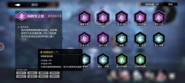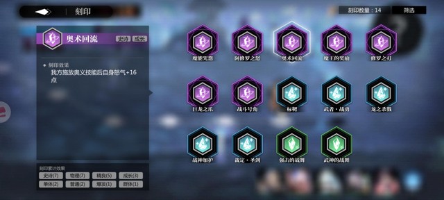 如果出现的刻印是绿色普通或蓝色精良,那么优先选择物理,其次是单体,成长。词条内容可以是物理技能增伤,单体技能增伤,攻击增强,回复怒气,奥义增强,敌方受伤加深,敌方减防。