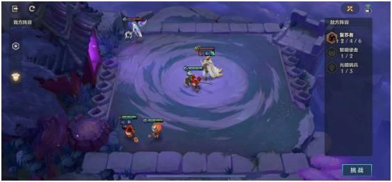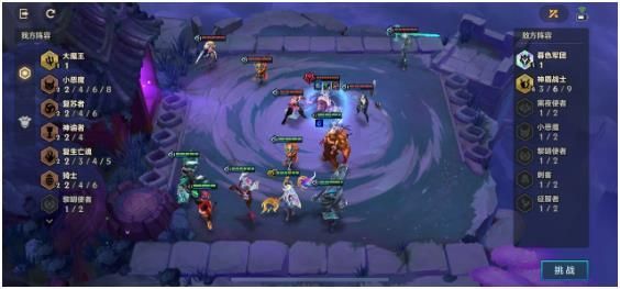 第一关是由1星韦鲁斯和2星饮血羊刀无尽的厄斐琉斯加上3星的弗拉基米尔组成的两游侠两黑夜。玩家分配到2星波比、2星克烈以及1星提莫组成了2小恶魔1大魔王的羁绊。