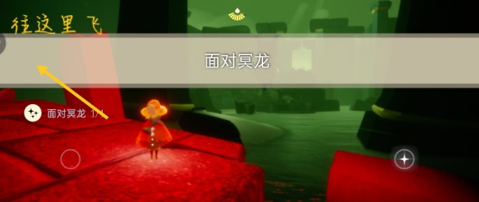 第二个任务是收集紫色光芒。首先进入禁阁,往,之后往右飞,到达两人门,如图