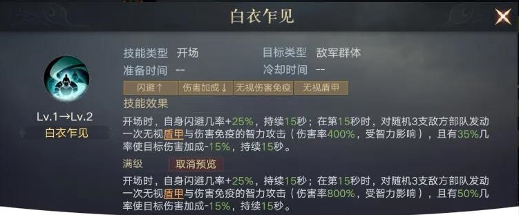 单tag的武将容易确定加点方向,但是多tag,又或者像是攻守这样具有两个方向,辅助这样光看tag方向不明的该如何加点呢?咱们第一个看的,自然就是武将的技能了。