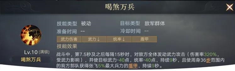再来说张飞,他的tag是辅助&攻守,但是他的技能是受武力影响的,所以他的加点方向一般情况下自然也就是武力。