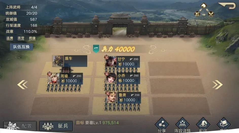 以上述阵容为例,这套吴弓阵容没有防御型的武将,也就是没有坦克,也没有奶妈,这时候该怎么站位,加点又该怎么加?