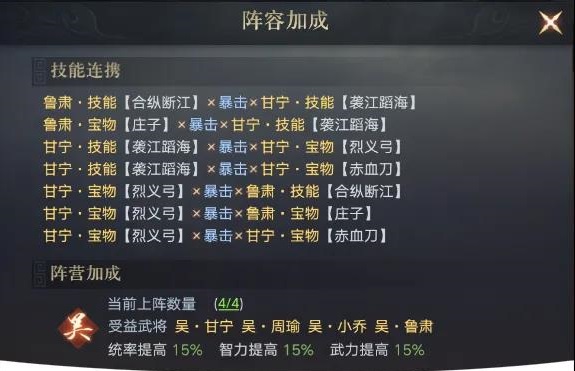 很显然,这套阵容的输出点是周瑜和甘宁,所以小乔的加点自然是速度最好,开局控场。