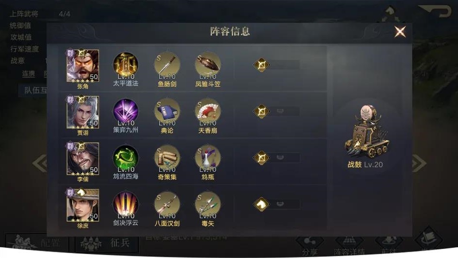 譬如控制型武将我们一般会加先攻,但我们实际上一套阵容只需要有一位控制型武将加先攻即可,一般是技能效果具有失策、怯战效果的。