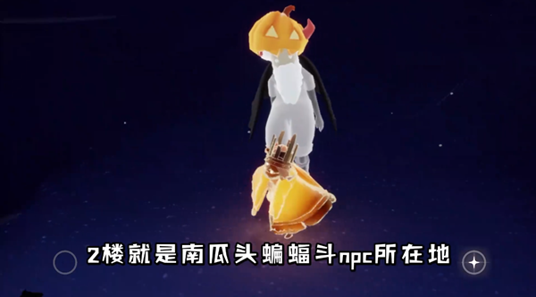 2、再经过通道一直往上走,在二楼就可以找到蝙蝠斗篷、南瓜帽先祖了。