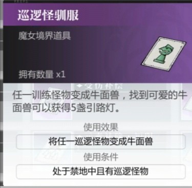 特性:把一个巡逻怪变成“可爱”の牛面兽抓住可以获得五个灯(哈哈哈你也有今天平时不是追我追的挺开心嘛?!啊!卡西多莉太啊!你给路达哟啊!你给我站哪!拿来吧你!卑微北纬如是说道)