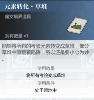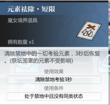 特性:消除当前关卡的考验元素三秒(包括但不限于走路掉灯BUFF、陷阱、巡逻怪、等)但祭坛无法清除如祭坛毒雾