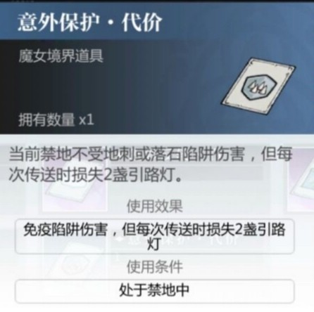 特性:本关受伤不再消耗引路灯且本关掉灯BUFF改为两步引路灯-1