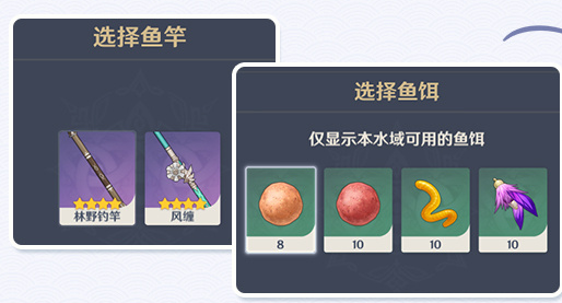 在不同区域使用对应的鱼竿,可以提高钓鱼成功率。