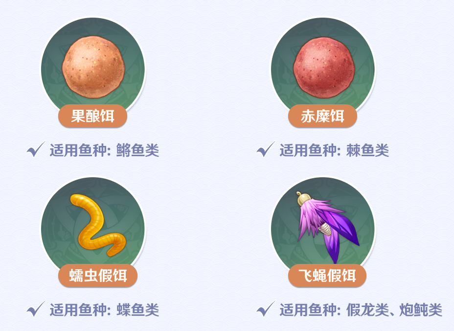 不同种类的鱼儿喜爱的鱼饵也不同哦。