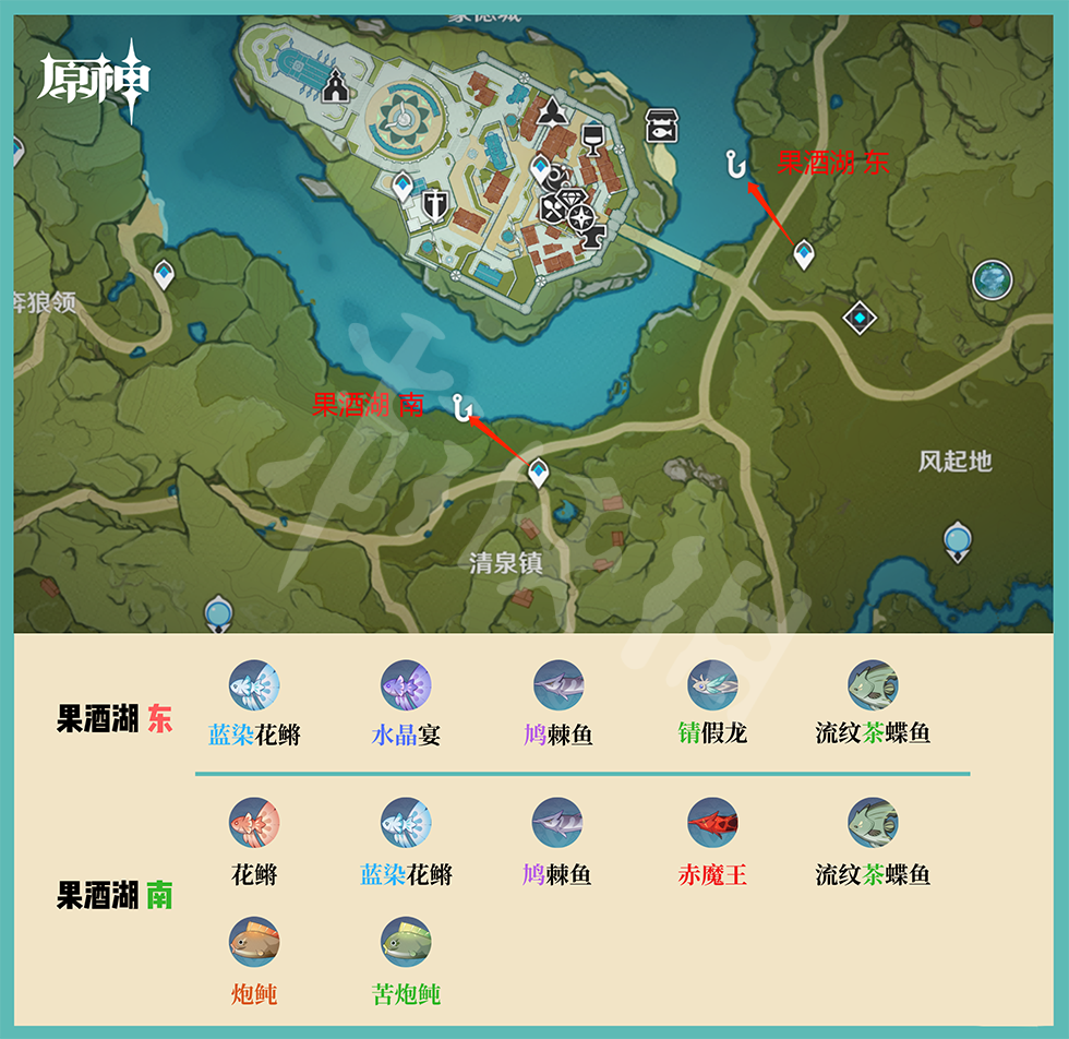 原神钓鱼点蒙德在哪?在游戏的2.1版本中新上线了钓鱼系统,很多小伙伴可能还不清楚各地的钓鱼点在哪吧,今天小编给大家带来原神蒙德钓鱼点位置分享,快来看一下吧。