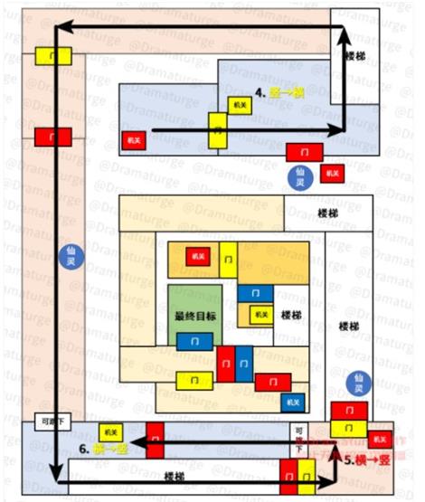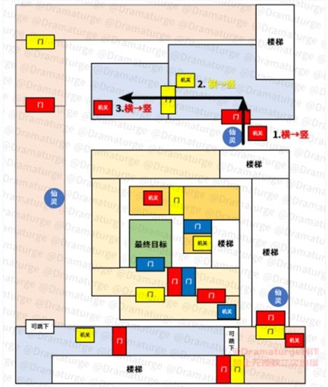 *按下图黑色箭头走,仅触发图片中标注序号和横竖的机关。