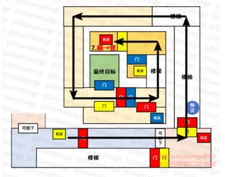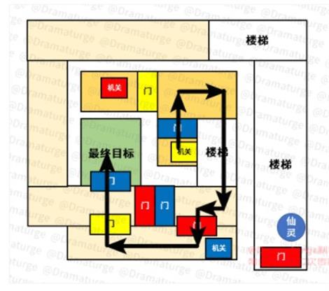 *注意1:这个地形图的房间大小没有参考意义,仅供读者理解各个门和机关的相对位置。