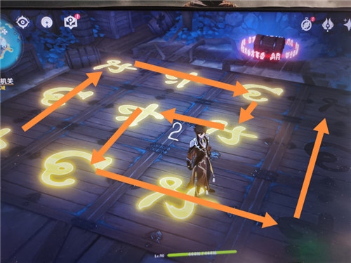 3、玩家顺着任务指引一路前进,进入一个坑道,里面有机关,按照正确的顺序踩机关才可以通过。