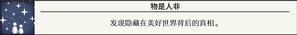 《WILL美好世界》全成就攻略1、真假结局成就物是人非:达成真结局获得(即在倒计时结束前将所有角色的最终结局达到S,最后点击左下角邮箱上的感叹号进入门内,不过不点也没关系,倒计