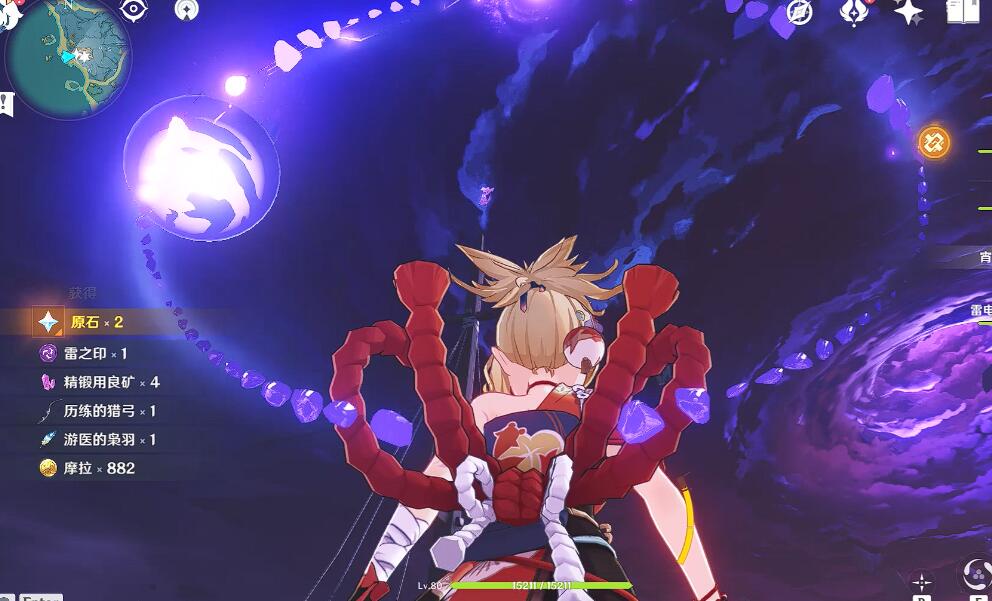 12.之后下方的门会开启,进入山洞,击败怪物,开启宝箱,引导雷灵,通过相位之门回来。