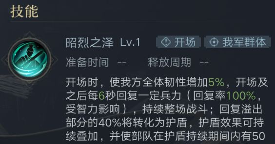 即武将的技能带有护盾效果,保护己方队伍不受伤害,大幅度保障存活的兵力与兵力输出能力。