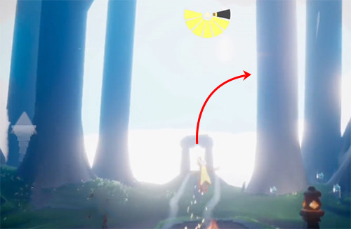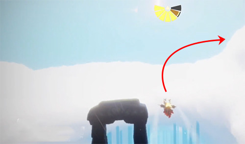 在右上角可以看到一个云层洞穴,我们可以直接飞到上面去,具体位置下图所示;
