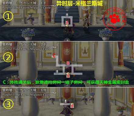 隐藏要素:外传通关后,到异时层米格兰斯城2楼左上狄雅德拉的房间,从右边可到镜子房间,在最左边找到天神金属密封盒,用于打造第2把天神武器。 详见待发布