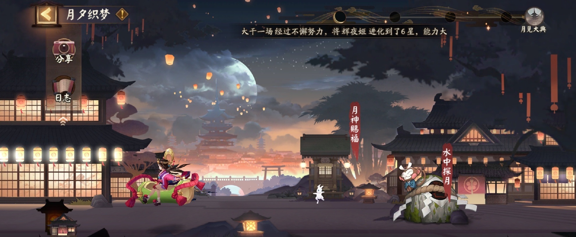辉夜姬为平安京的各位筹备了中秋'月见大典',需要阴阳师大人们帮助她来一起收集'辉月之礼'凝聚福气。让我们一起驱散乌云,见证平安京的'月见大典'吧!