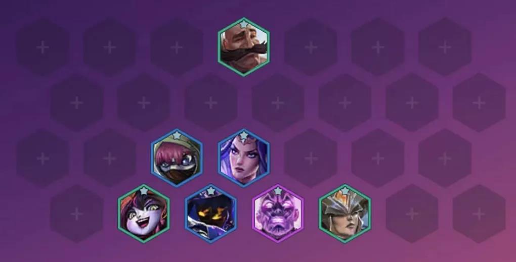 莫甘娜带复活甲就行了,反正跟剑魔两个谁先2星谁带肉装站前排。