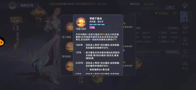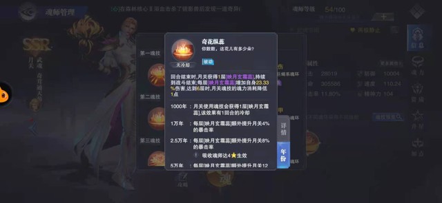 猛兽第二魂技是月关的后期续航神技,满层后提供72%的暴击,并且所有技能消耗减一。这个技能可以让月关在加点时不需要分出点去加暴击。