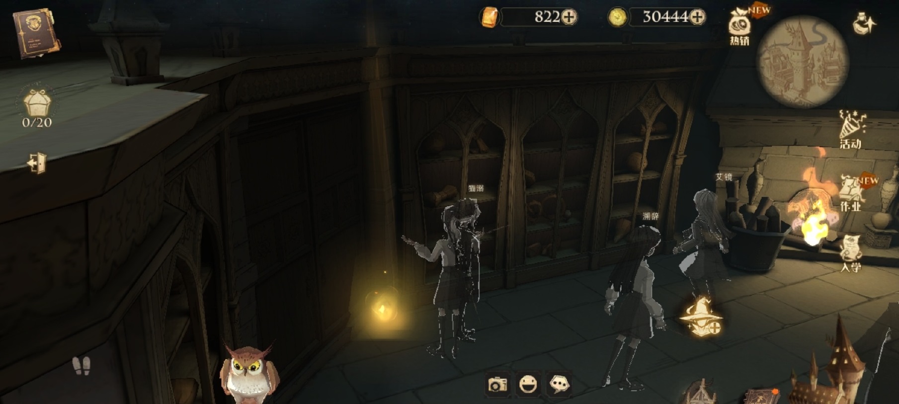 校长室里,先在宿舍熬隐形药水,磕了之后从城堡主楼爬上去,然后就能进去了,点击篝火左边黑门附近的光圈即可。