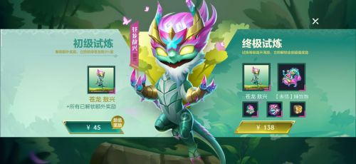 3、苍龙试炼分为2个级别,第一个是45元的,购买后直接获得苍龙敖兴,然后满满解锁等级获得奖励,138元直接获得全部的奖励,如果是常玩的玩家推荐购买45元的即可。