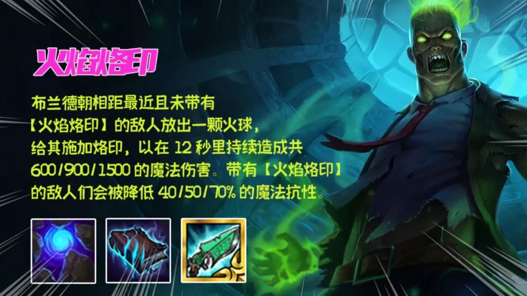 阵容的主要输出就是布兰德,其法力值只有20点,携带蓝霸符一次普攻一次技能且技能是DOT伤害哪怕布兰德死亡,伤害会依旧触发。