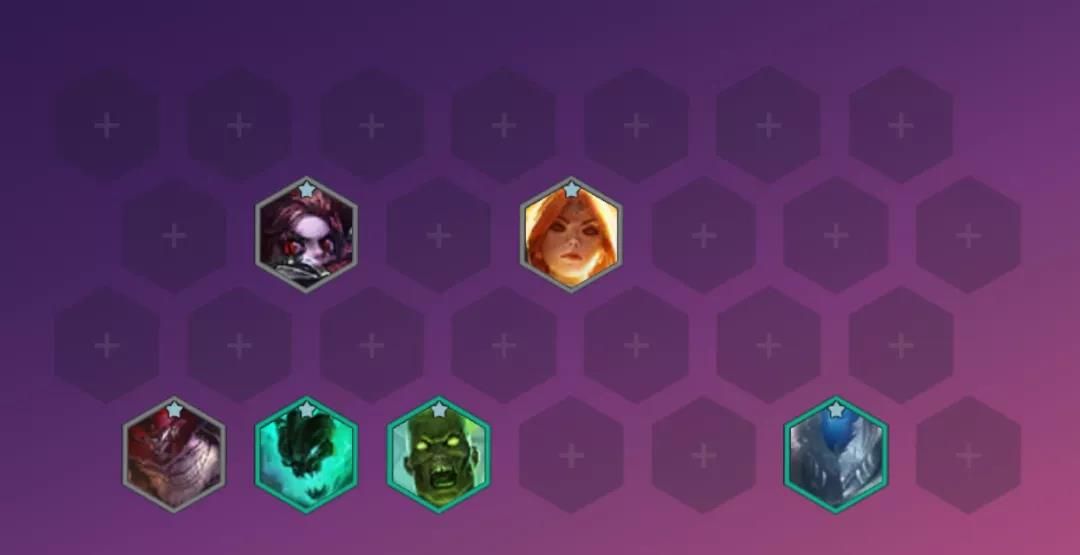 棋子构成:蕾欧娜、加里奥、贾克斯(武器)、诺提勒斯(泰坦)、芮尔、布兰德(布兰德)、锤石、维克兹(大眼)。